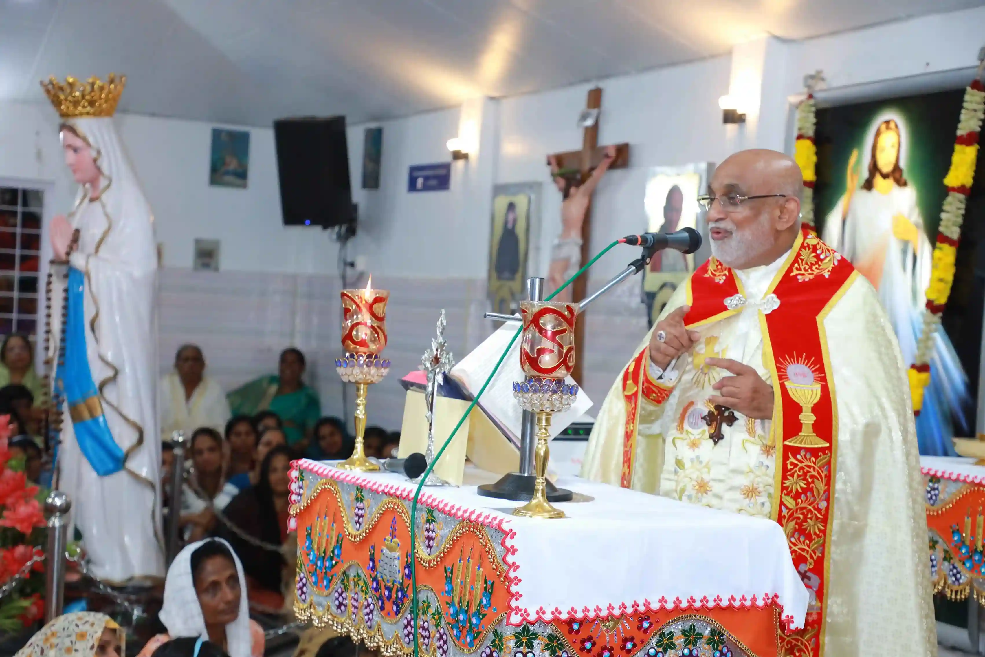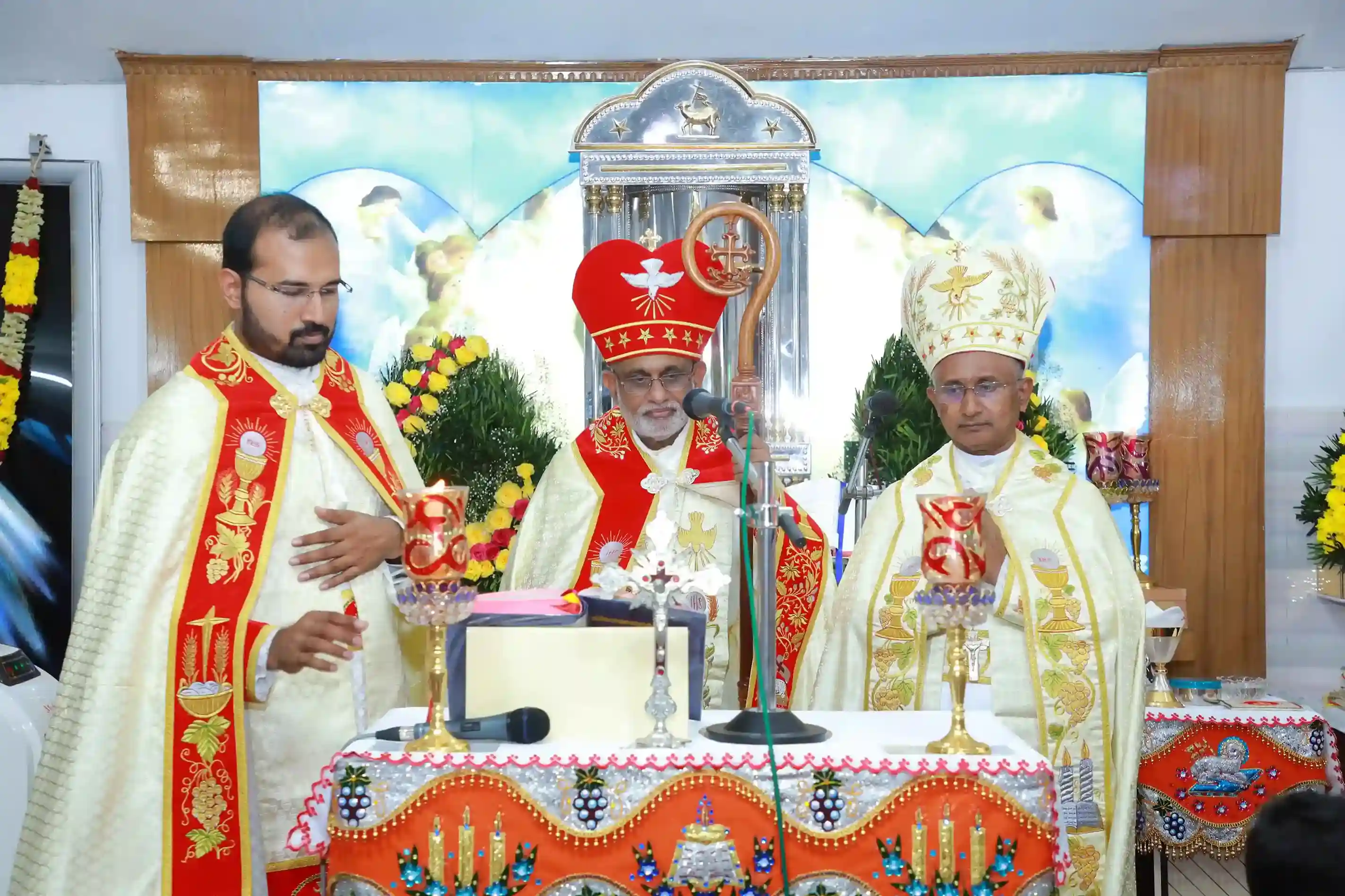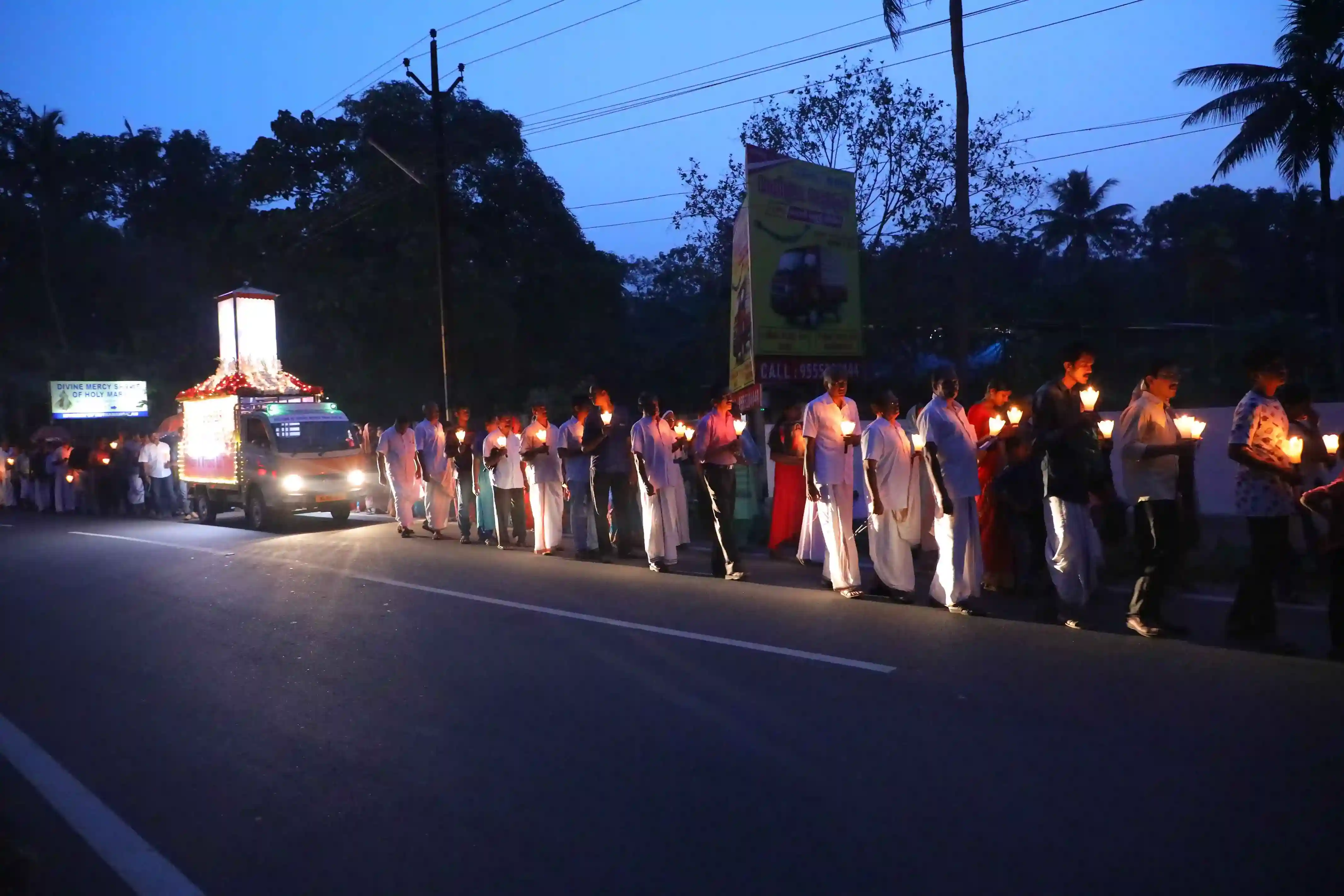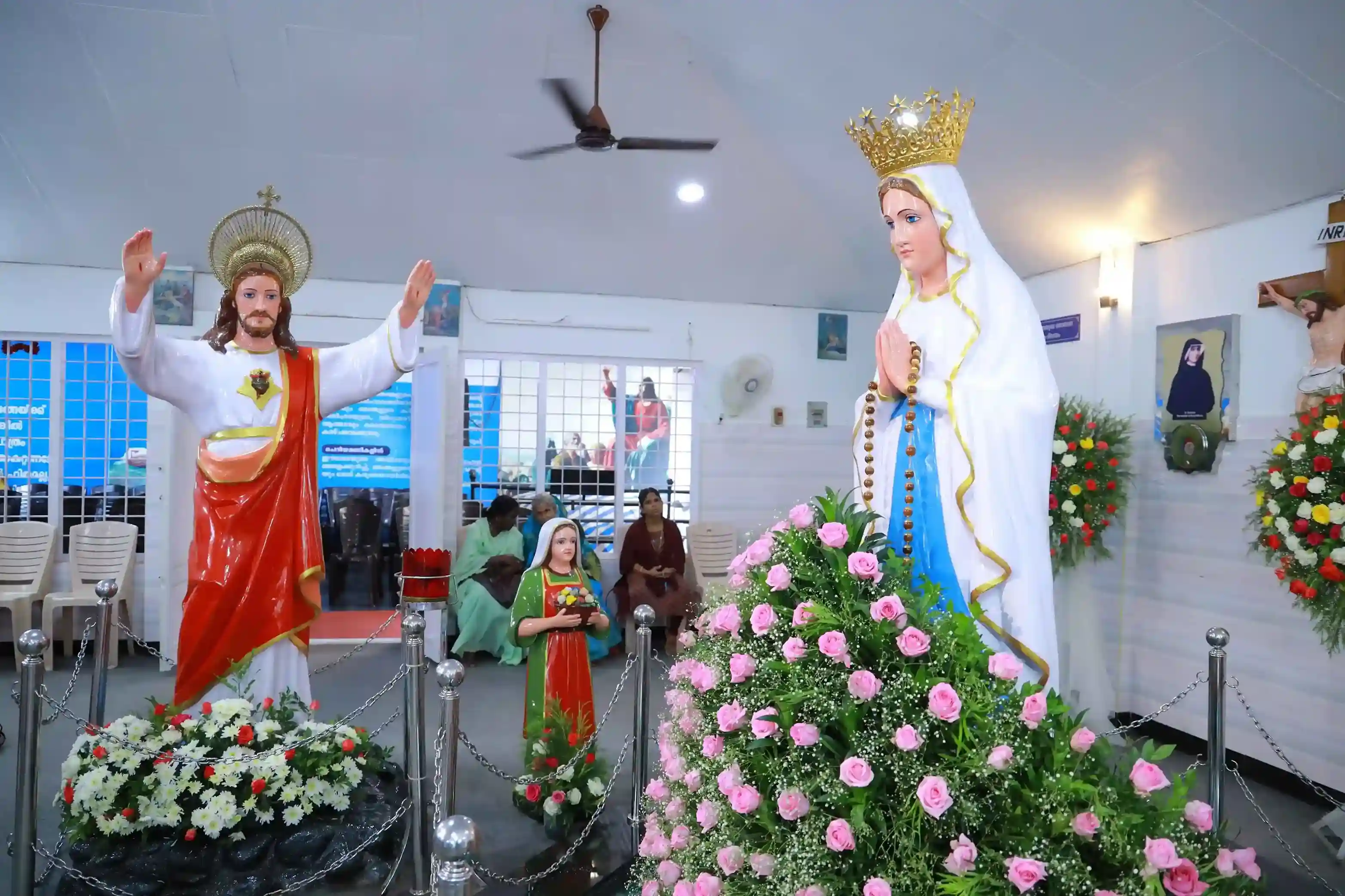 As celebrated all over the world, Divine Mercy Feast is celebrated on the first sunday after Easter according to the instructions given by Our Lord to Saint Foustina. Eventhough this Shrine came into existance through the Apparition of Holy Mary, She asked to celebrate the Divine Mercy Feast as the prime feast of the Shrine. The Feast with plenary indulgence is celebrated with great devotion by taking out a solemn procession around the town reciting Divine Mercy Rosary with lightend candles. Prior to the Feast and in preparation for it, nine days of Divine Mercy Novena and Divine Mercy talks are conducted in the Shrine.
