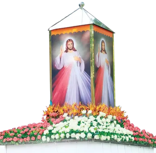 As celebrated all over the world, Divine Mercy Feast is celebrated on the first sunday after Easter according to the instructions given by Our Lord to Saint Foustina. Eventhough this Shrine came into existance through the Apparition of Holy Mary, She asked to celebrate the Divine Mercy Feast as the prime feast of the Shrine. The Feast with plenary indulgence is celebrated with great devotion by taking out a solemn procession around the town reciting Divine Mercy Rosary with lightend candles. Prior to the Feast and in preparation for it, nine days of Divine Mercy Novena and Divine Mercy talks are conducted in the Shrine.